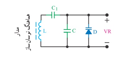 شكل 2 – موازي شدن ديود خازني با مدار هماهنگ نوسان ساز جهت تغيير فركانس رزونانس