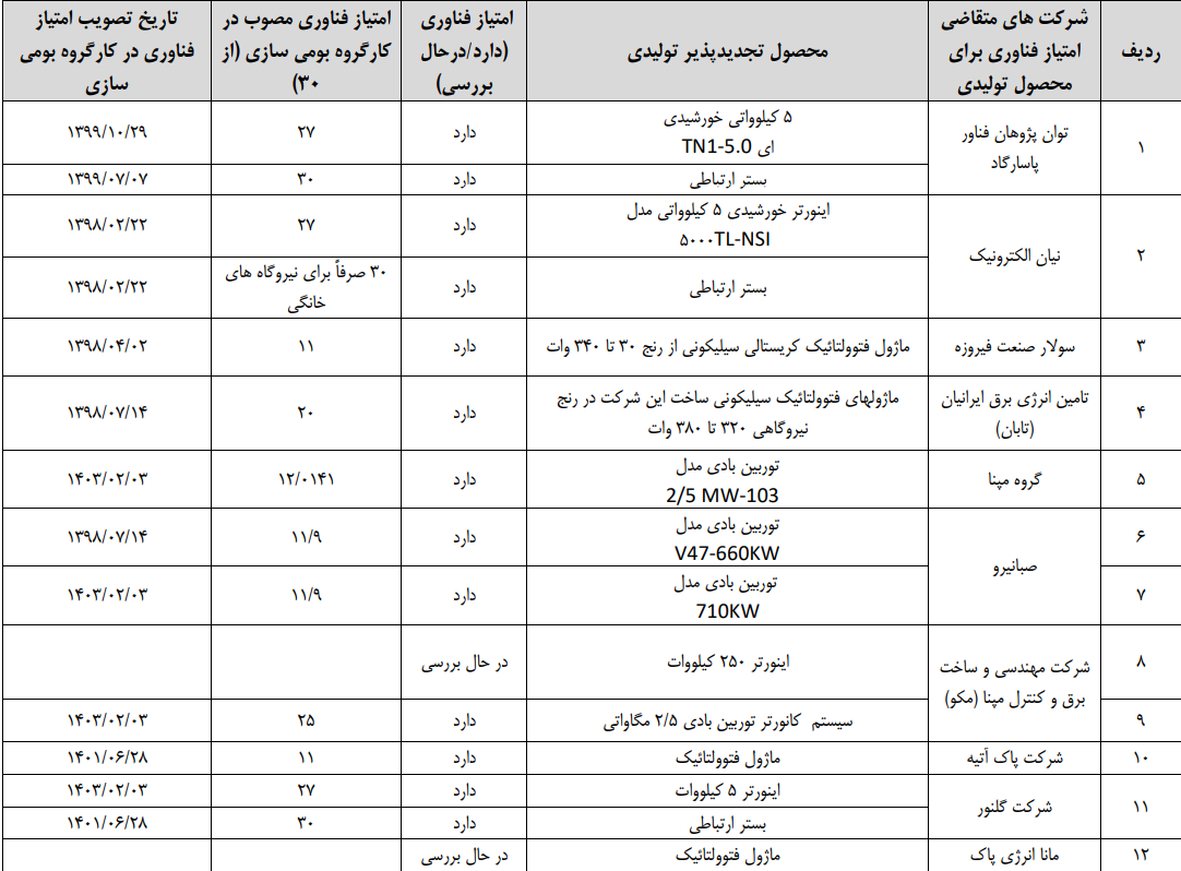 لیست شرکت های تولیدکننده تجهیزات تجدیدپذیر